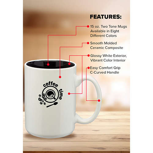 15 oz. Glossy Two-Tone Personalized Ceramic Mugs