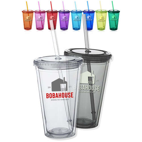16 oz. Double Wall Acrylic Tumblers With Straws