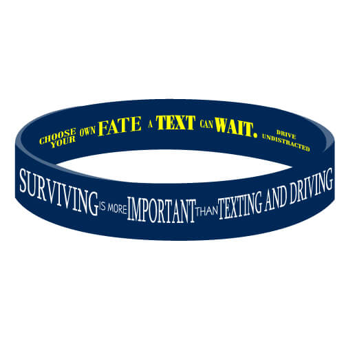 A TEXT CAN WAIT! DON’T DRIVE DISTRACTED. Wristbands are made of 100% silicone and are made to the exact specifications and quality of the popular LiveStrong® wristbands.