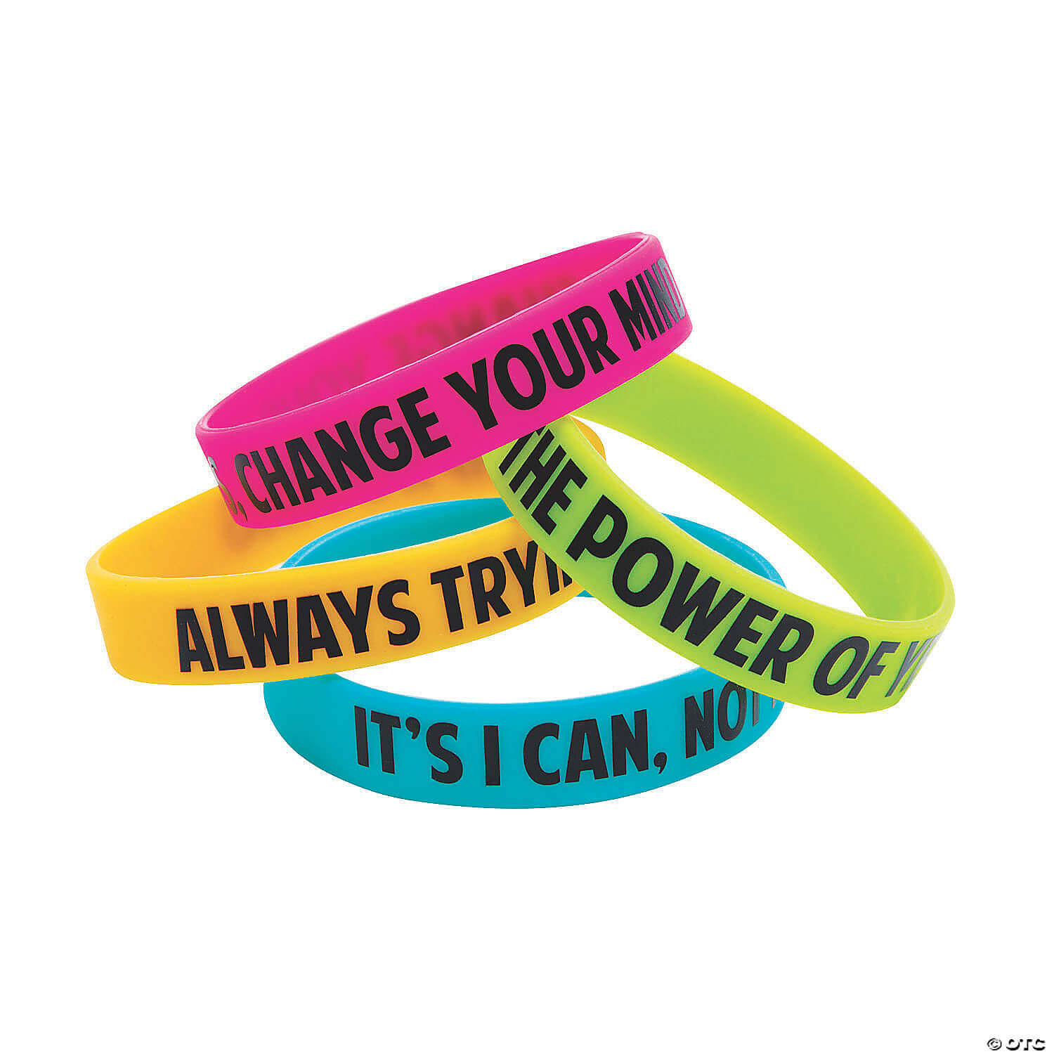 Motivate students to grow! These bright bracelets feature inspirational quotes like “It’s I Can Not I Can’t”, “Change Your Words Change Your Mind”, “The Power of I Can, The Power of Yet” and “Always Trying Always Improving” to encourage kids of all ages. Add them to your classroom supplies as incentives or hand them out to encourage students to have a growth mindset! Silicone. 7 1/4″ circ. © Oriental Trading Company