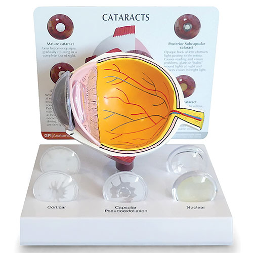 five interchangeable lenses that show various types of cataract conditions including:
