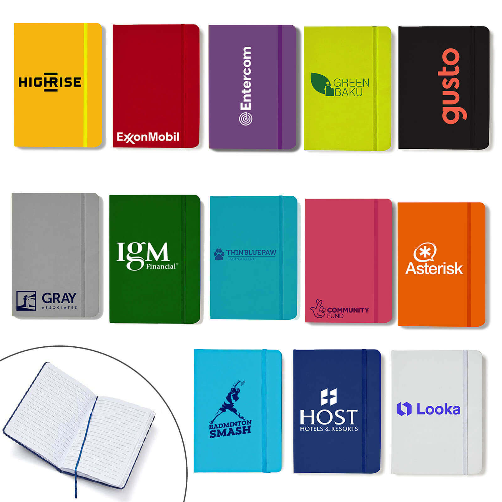 Features a color-coordinated elastic band closure and ribbon bookmark