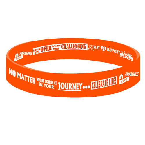 COPD effects Millions of people every year, this bracelet will bring awereness.. Size Adult 8. Wristbands are made of 100% silicone and are made to the exact specifications and quality of the popular LiveStrong® wristbands.