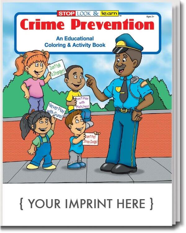 - The Crime Prevention coloring and activity book teaches all these lessons and more with a full color cover and 16 pages of coloring, games, puzzles
