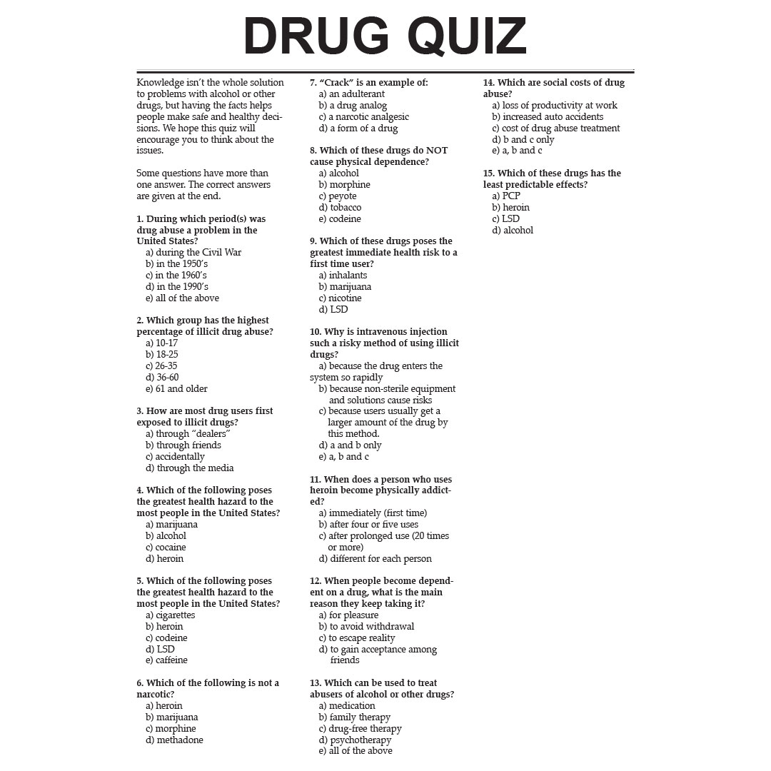 Drug Quiz/Answers – Drug Fact Sheets (Sold in Sets of 50)