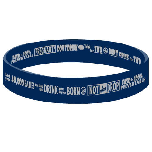 FASD is 100% preventable. Get the word out that drinking while pregnant is never okay! Size Adult 8″. Wristbands are made of 100% silicone and are made to the exact specifications and quality of the popular LiveStrong® wristbands. Bracelets have reversible imprints. Flip the bracelet to show off both great messages.