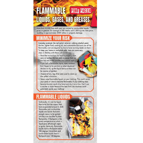 The Flammable Liquids, Gases, & Greases Fire Safety Rack Card is perfect for teaching others about fire safety and fire prevention!