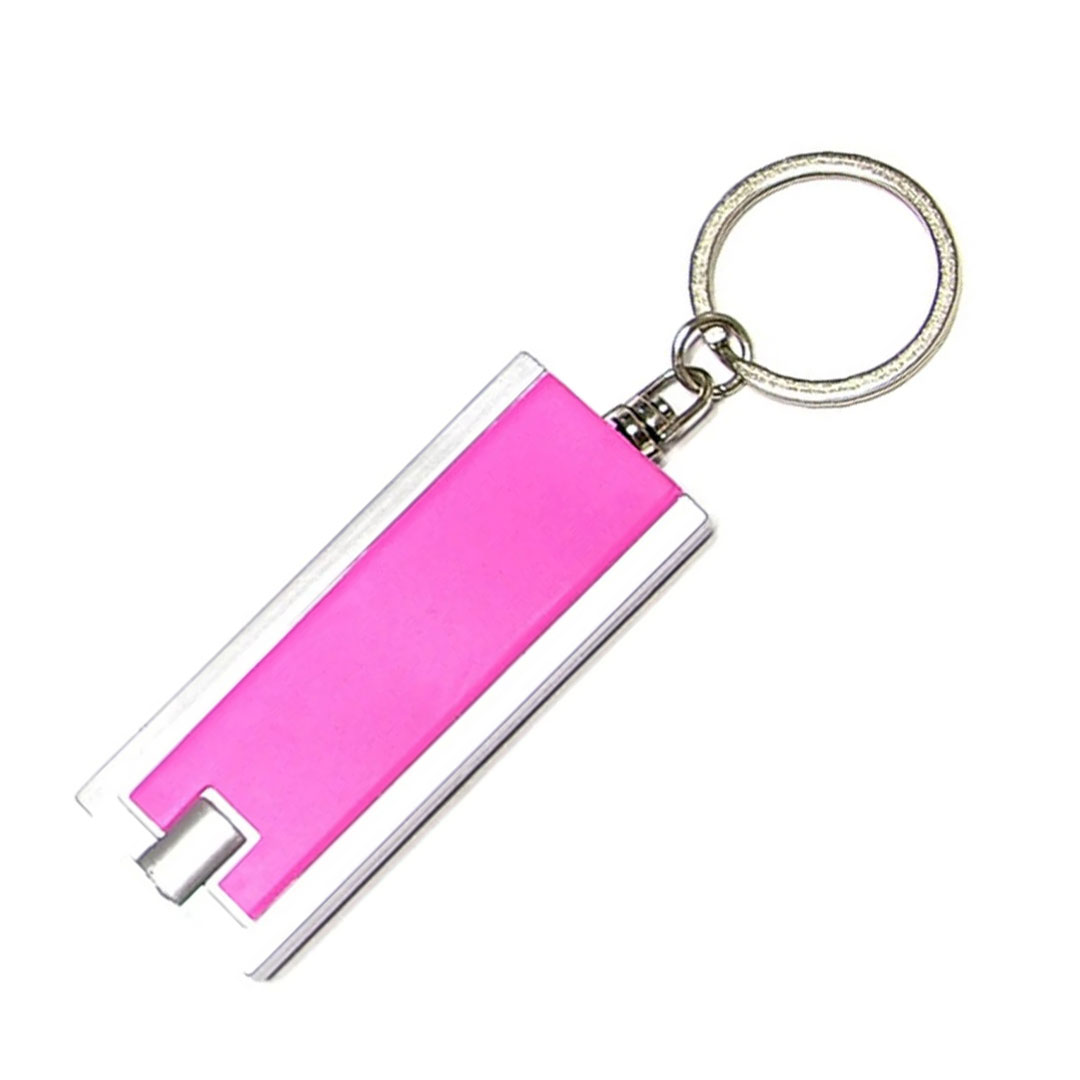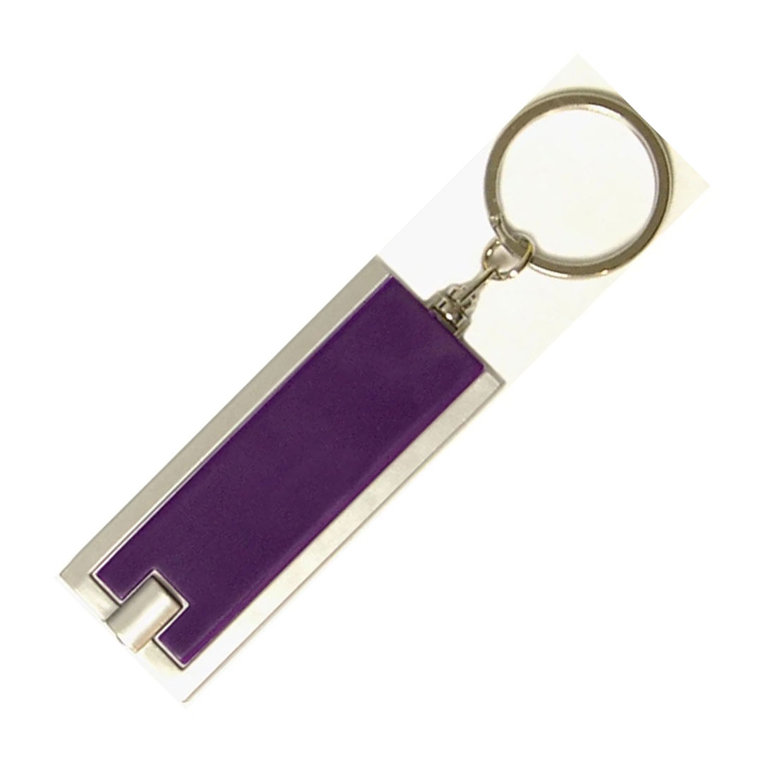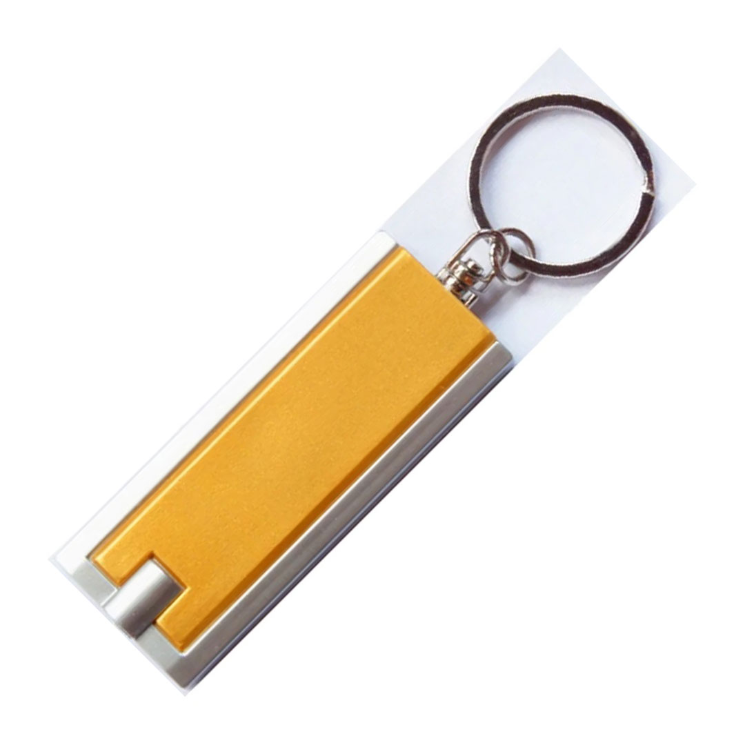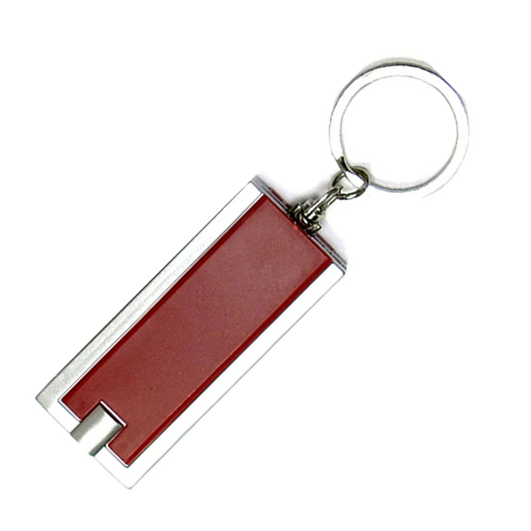 Slim flash light with super bright LED light. Flat rectangular body with silver trim. Non-translucent design. No six black spots seen on the imprint area. Long life lithium batteries included. Up to 30 hours continuous lighting time. 100,000 hours of life time for the LED light bulb. Three years on shelf time! Great gift for thin key holder, key tag, key chain, key ring, safety, emergency.