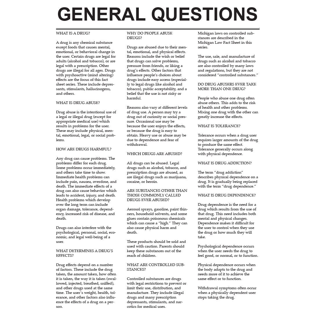 General Questions About Drugs Fact Sheet is a great handout during Red Ribbon Week