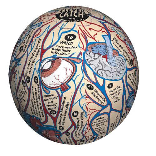 Students can test their knowledge in a fun and engaging way with our Anatomy Clever Catch™ Ball. This 24” inflatable vinyl ball provides an excellent way to practice on human anatomy facts.