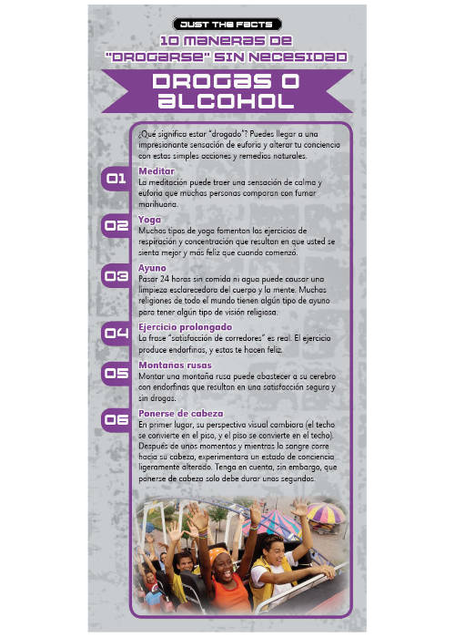 Just The Facts – 10 Ways To Get High Without Drugs or Alcohol Rack Cards – Sold In Sets of 100 ***Spanish***