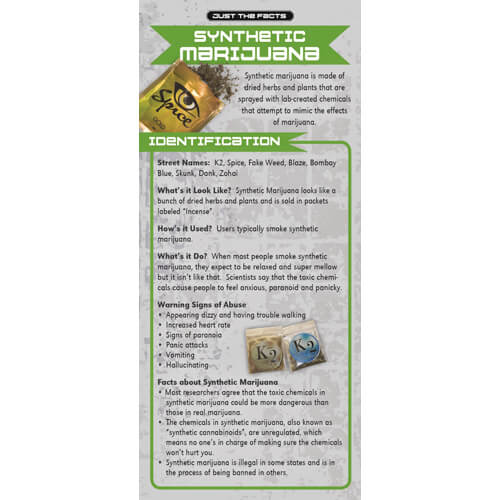 Just the Facts Synthetic Marijuana Rack Cards – Â Full of current, up-date topics for Drug Prevention and Red Ribbon Week.