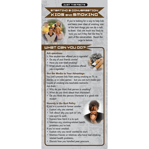 Just the Facts Tobacco Rack Cards – Starting a Conversation – Kids and Smoking – Â Full of current, up-date topics for Tobacco Prevention and Red Ribbon Week.