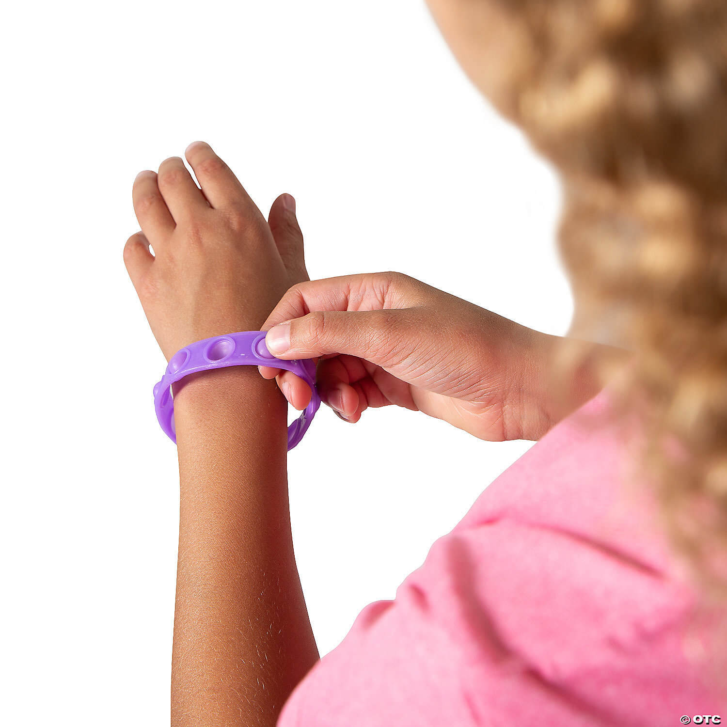 Kids love these bracelets because they’re not only colorful and comfortable to wear, but they also have re-poppable bubbles to keep kids’ hands busy and engaged. © Oriental Trading Company