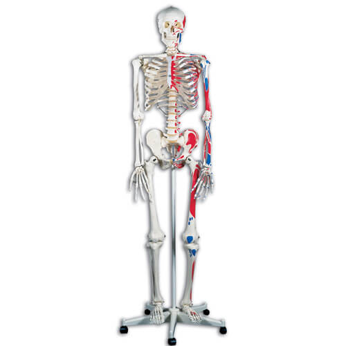 This version contains all standard benefits of the Standard Skeleton Stan but additionally offers representations of the structural interaction between bones and muscles * It depicts over 600 structures of medical/anatomical significance including muscle origins (red) and insertions (blue) on the left side as well as hand numbered bones, fissures, and foramina on the right side. ***Does not include roller stand.