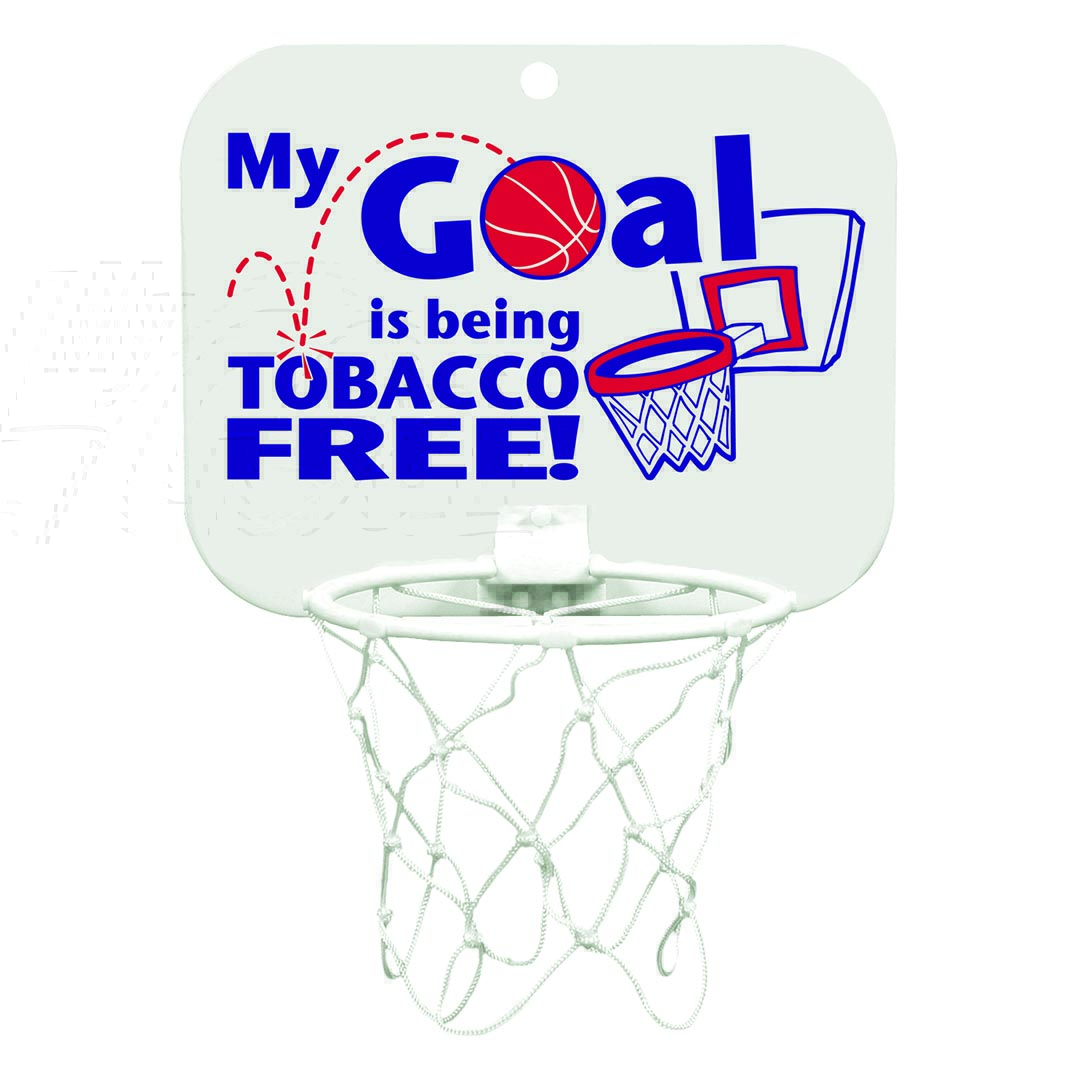 Your students will love to dribble, shoot and score their way to a Smoke Free life! Bright, bold Smoke Free message will help promote team spirit for schools and booster groups. Plastic backboard is durable and includes net. Mini basketballs sold separately. Size 8 3/4″ x 7 1/4″.