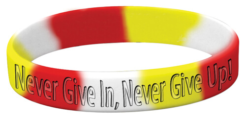Never Give In, Never Give Up Silicone Bracelet sends a great message for Red Ribbon Week or Bullying Prevention Program