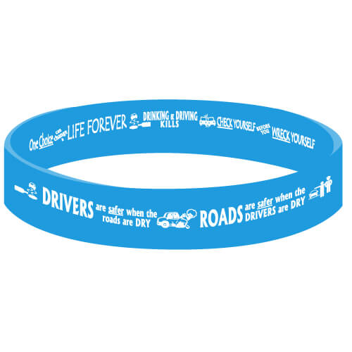 Drinking and Driving kills. This bracelet will be a constant reminder of what this choice can make on not only your life, but everyone else’s, too. Size Adult. Wristbands are made of 100% silicone and are made to the exact specifications and quality of the popular LiveStrong® wristbands. Bracelets have reversible imprints. Flip the bracelet to show off both great messages.