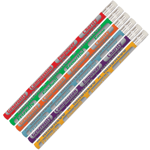 Colorful pencils that are an excellent way to remind your students of how they can make a difference with kindness. Set of 144 pencils.