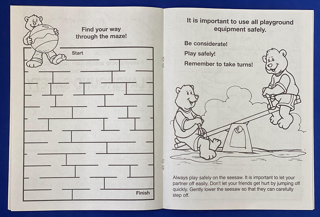 - Let’s keep it that way with the Play It Safe on the Playground coloring & activity book