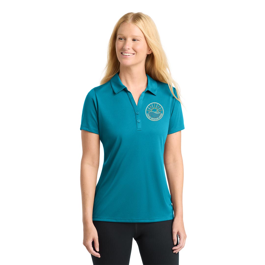 - 3.8-ounce, 100% polyester interlock with PosiCharge technology