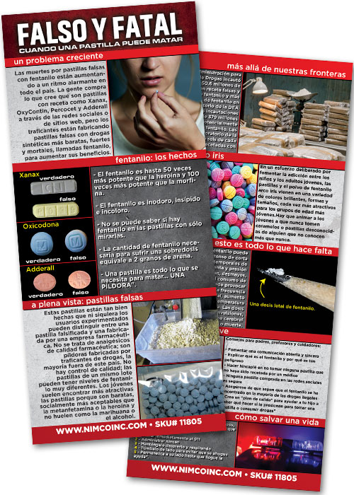Fake & Fatal: When One Pill Can Kill Rack Card (Spanish version) is designed to educate people on the dangers of fentanyl and the surging rate of overdoses from “fake pills.” While most people don’t know what fentanyl looks like, it can come in many forms, including pills and powders. This card explains why drug dealers and drug cartels outside of the United States use fentanyl to create cheap fake drugs like Oxycontin, Xanax, Percocet, and Adderall, which can be lethal even if one pill is consumed. It also shows examples of real vs. fake pills, including the addictive rainbow pills that appeal to younger age groups. Our rack card also gives tips for parents, teachers, and caregivers on communicating the dangers of fentanyl and “fake pills,” as well as information on saving the life of someone who has overdosed. Remember, all it takes is One Pill To Kill.
