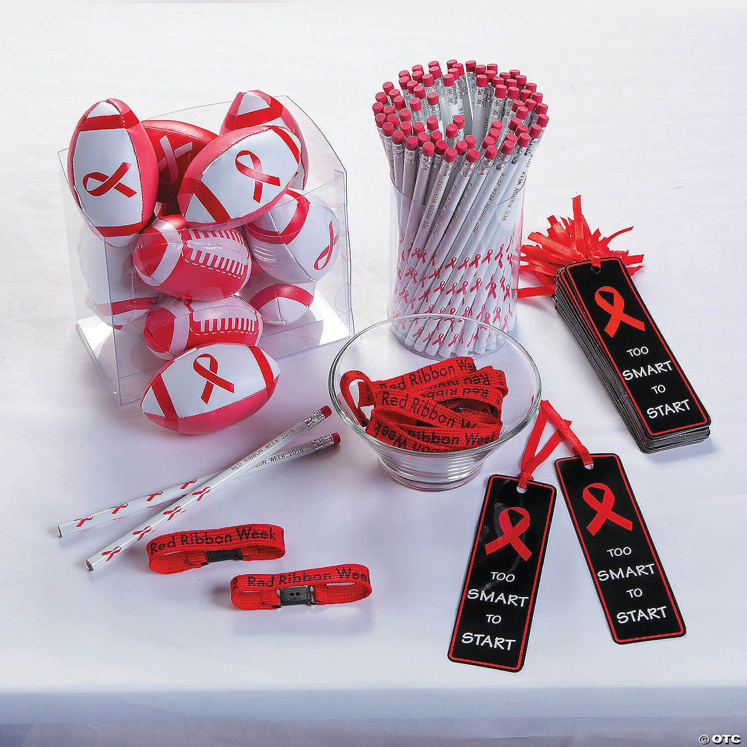 Red Ribbon Week Bookmarks. A fun way to show you’re proud to be drug free, each 6″ cardboard bookmark comes with a satin ribbon and reads, “Too Smart To Start”. Great giveaways for Red Ribbon Week, these bookmarks are perfect for raising awareness at schools, after school programs and much more! (4 dozen per unit) © Oriental Trading Company