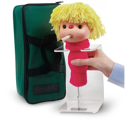 Smokey Sue may look cute but she delivers a deadly message. Demonstrates how tar gets trapped. Includes: Plexiglas stand, Five reusable collection tubes, and A durable carrying case. NOTE: Cigarettes not included