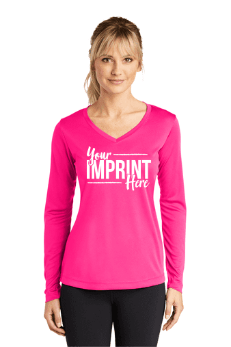 With a full, athletic cut and lightweight ultra-breathable fabric, these long sleeve tees include PosiCharge technology to preserve colors. Gently contoured silhouette. Self-fabric V-neck.