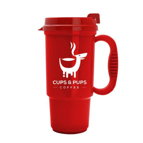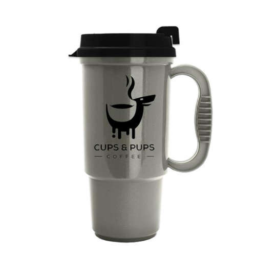 16 oz Insulated Auto Mug has a four-finger comfort handle