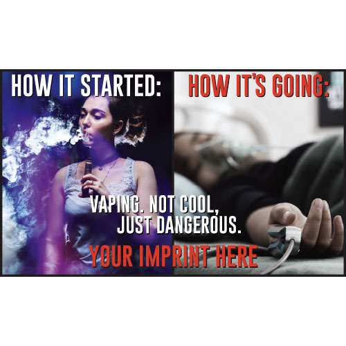 Spread a message of awareness with this eye catching “Vaping. Not Cool, Just Dangerous.” banner!