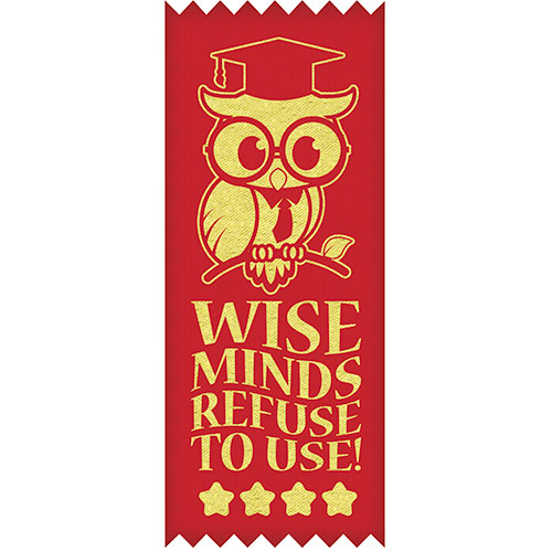 Encourage positive peer pressure and healthy lifestyles with this “Wise Minds Refuse to Use” ribbon. Self-Stick surfaces are located on the back at the top • 2″ x 5″ • Sold in sets of 100. Please check our more Red Ribbon Week items on our website!