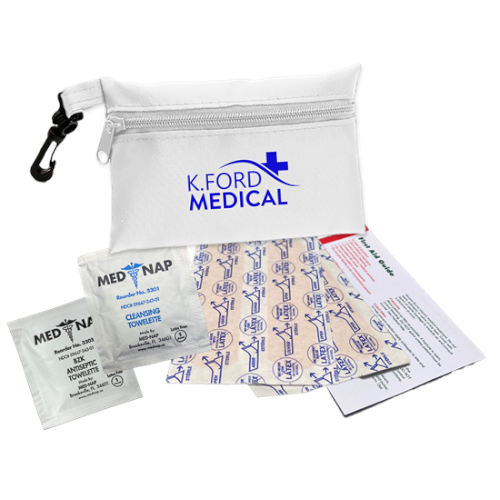 Contains 4 latex-free adhesive bandages, 1 antiseptic towelette, 1 cleansing towellete, and a first aid guide